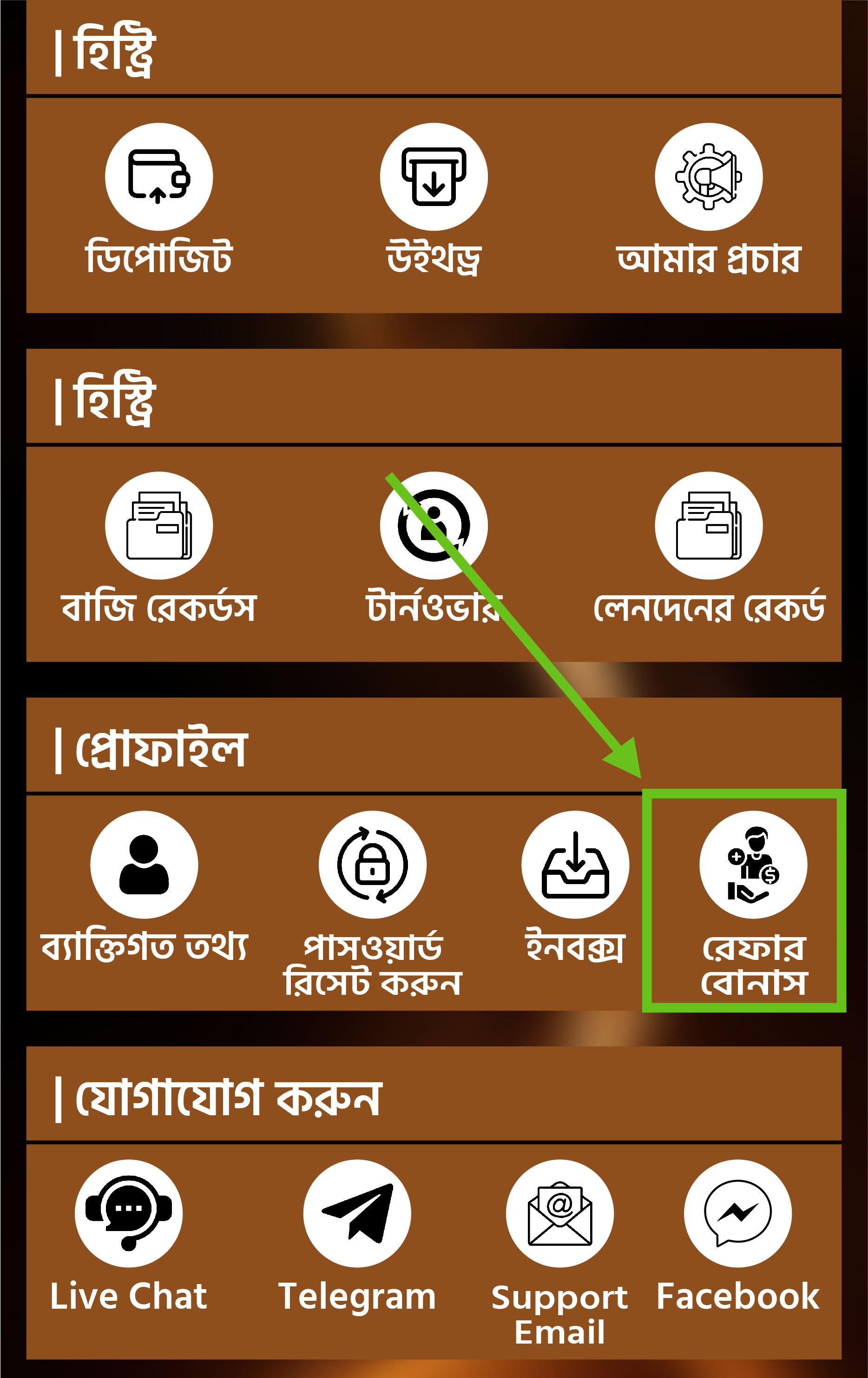 রেফার বোনাসে ক্লিক করুন